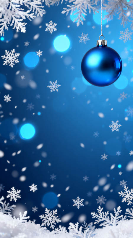 蓝色圣诞球与雪花背景