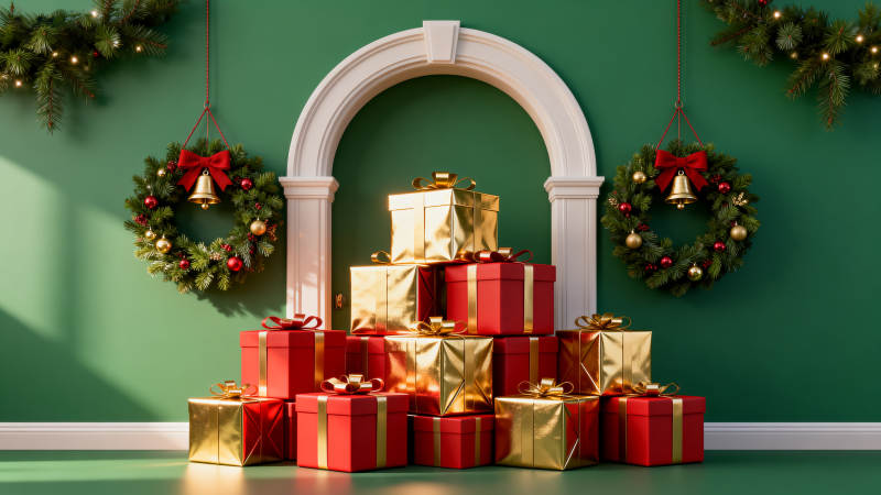 圣诞树与礼物的节日氛围