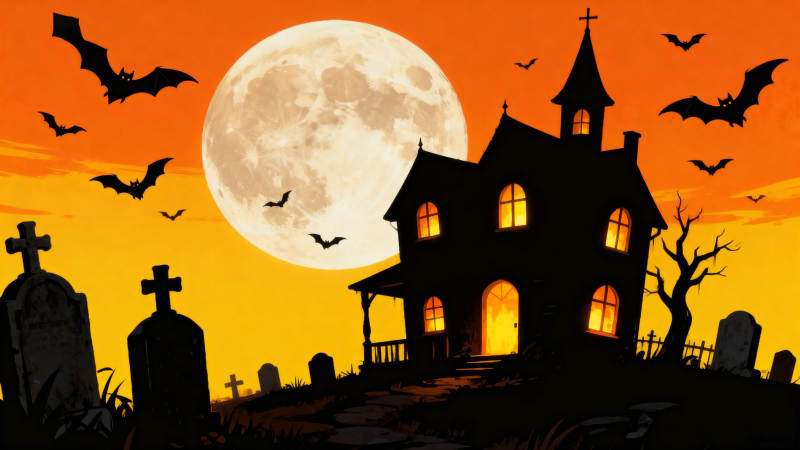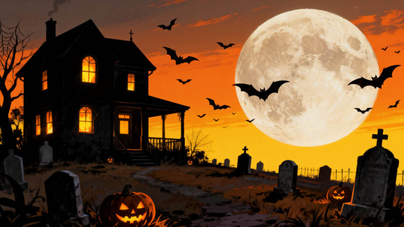万圣节恐怖鬼屋与满月