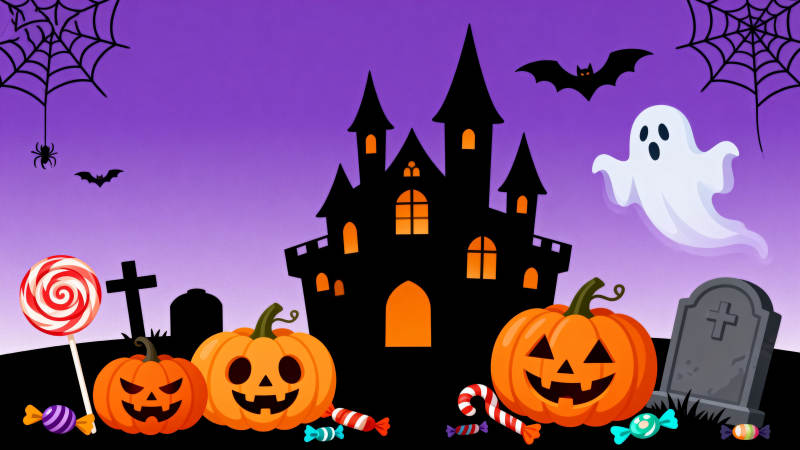 万圣节南瓜灯与幽灵装饰