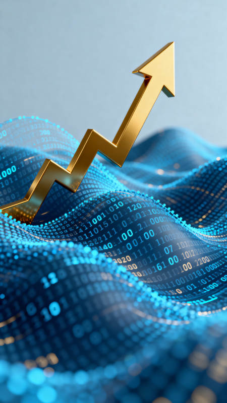 金色箭头数据波浪增长