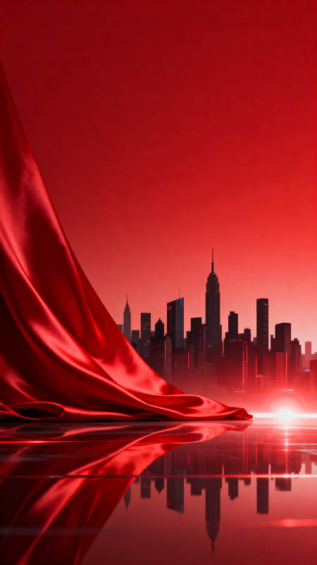 红色幕布与城市天际线