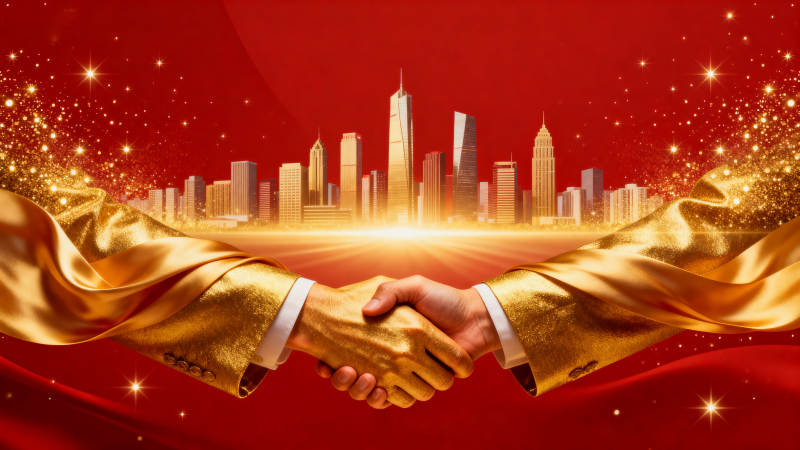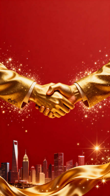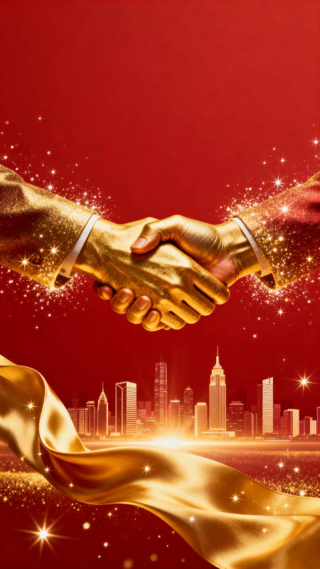 金色握手城市背景