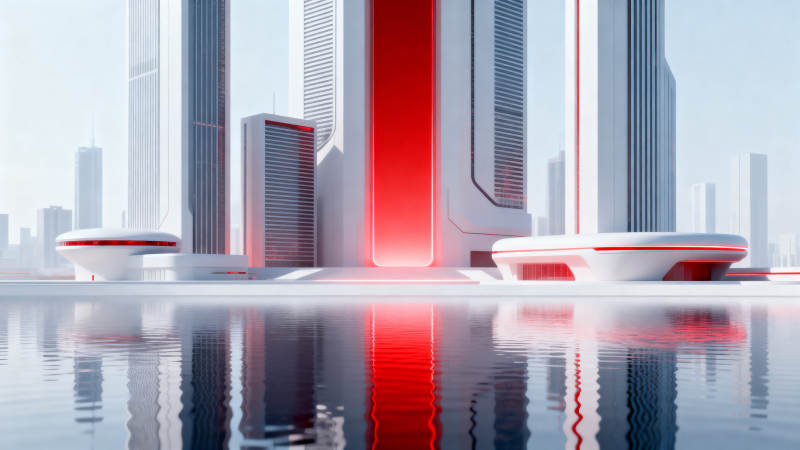 未来城市红色光影建筑