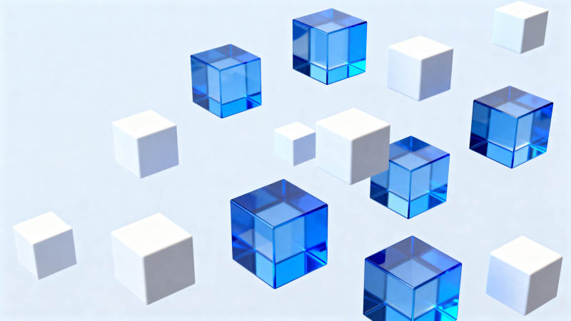 蓝色透明立方体与白色方块