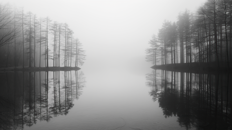 雾中湖影