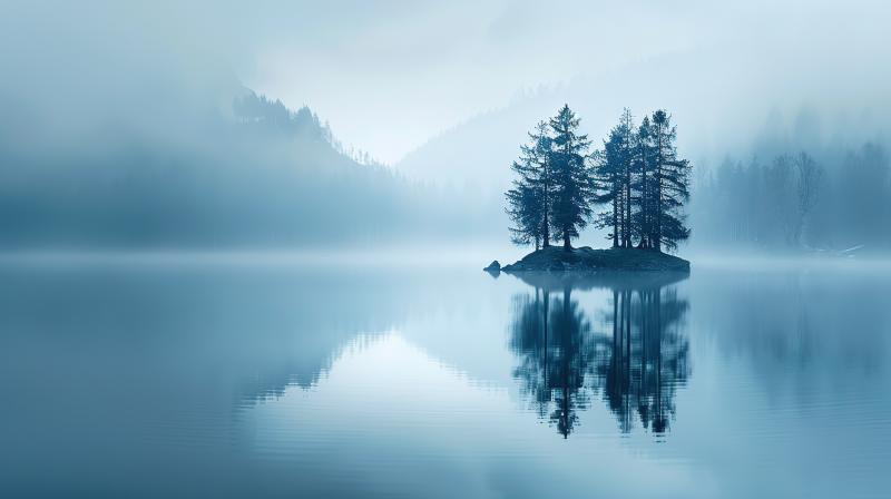 雾湖孤岛静谧景