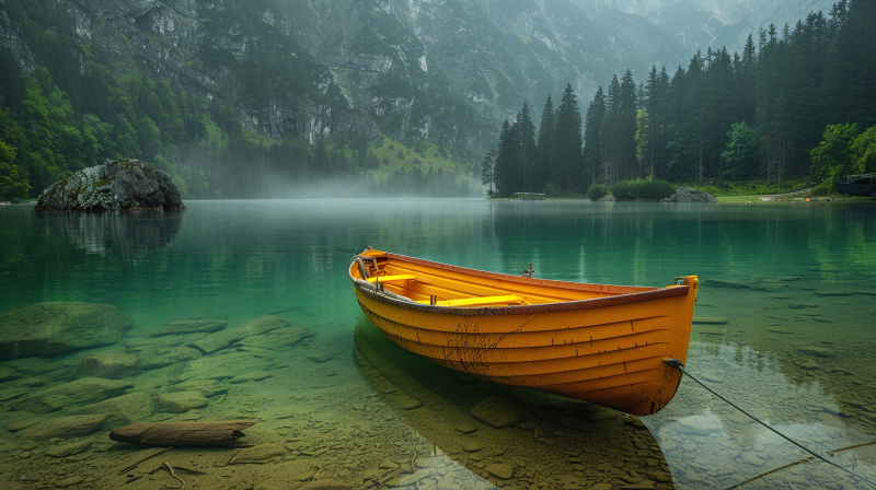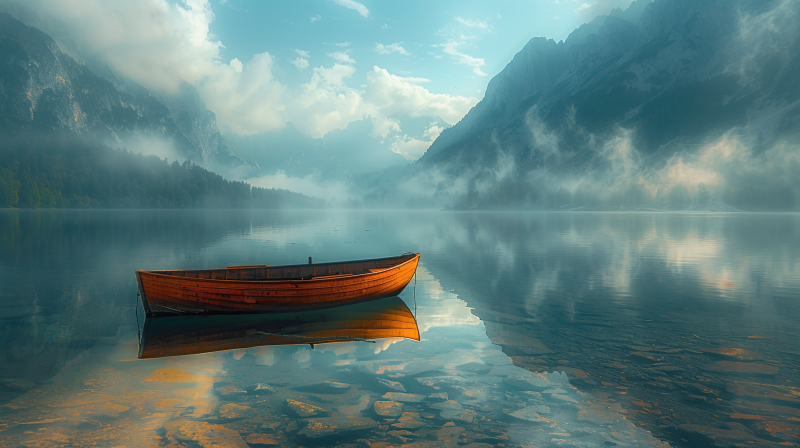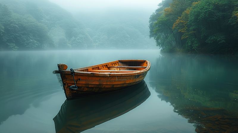 湖畔孤舟静谧景