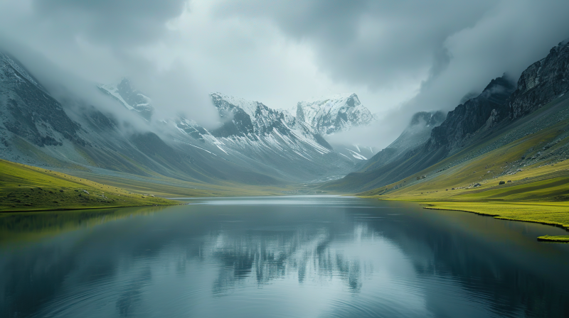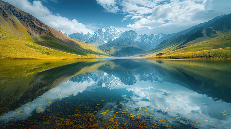 雪山倒影湖面