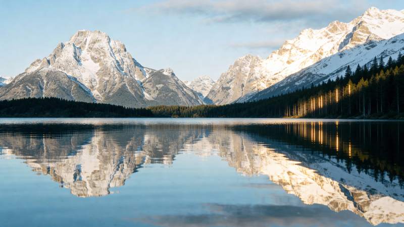 雪山倒影湖光