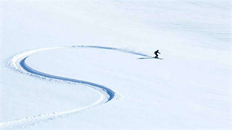 雪原上的滑雪轨迹