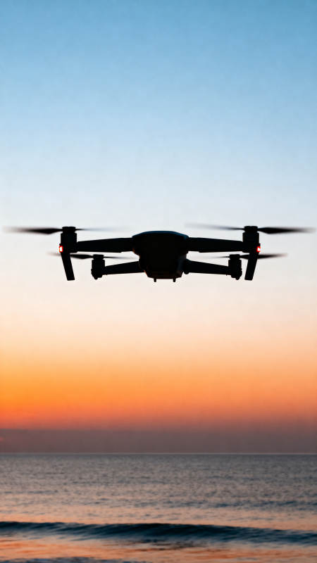 无人机掠海日落