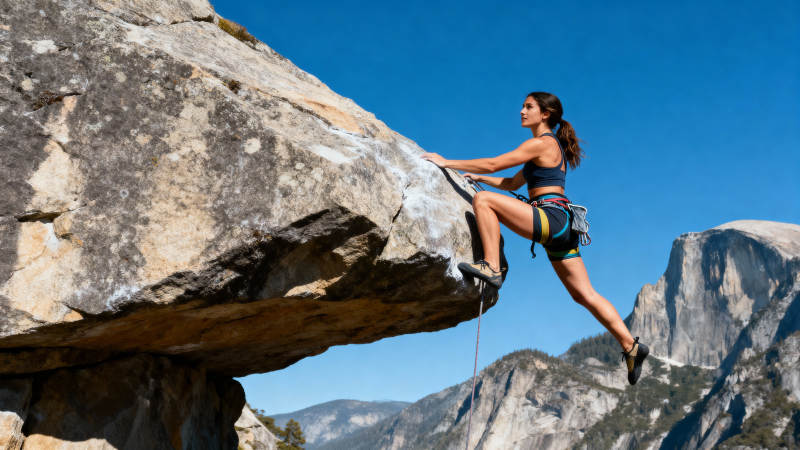 攀岩者征服峭壁