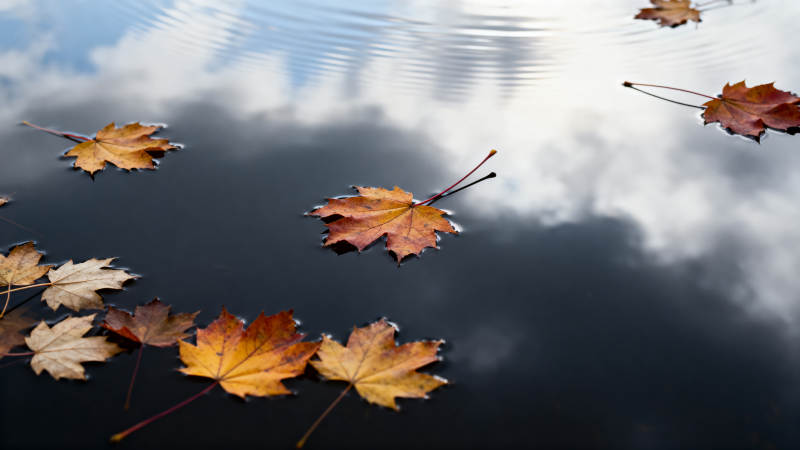 秋叶浮水映云天