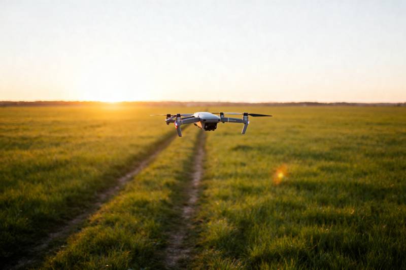 无人机飞越田野
