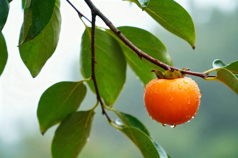 雨后柿子挂枝头