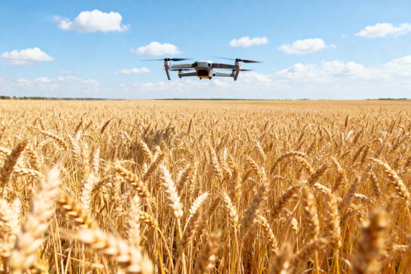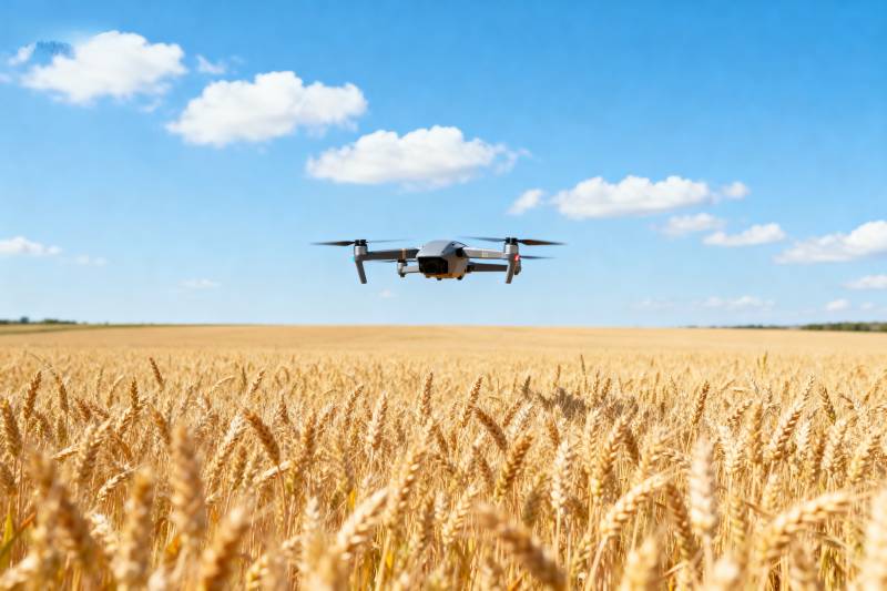 无人机飞越麦田