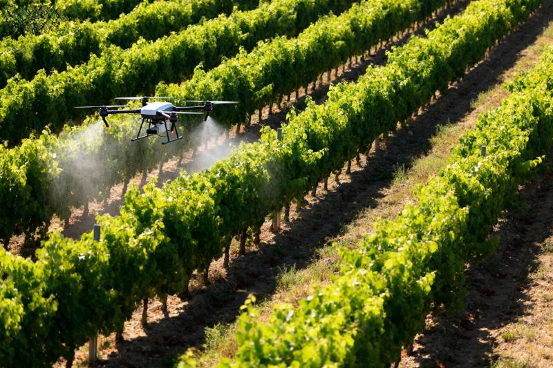 无人机喷洒葡萄园