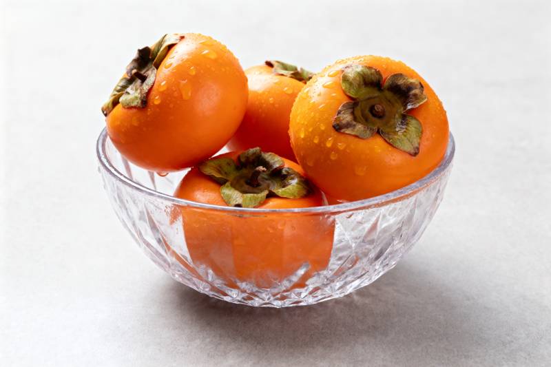 晶莹柿子盛碗中