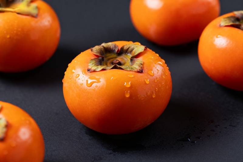 鲜橙柿子 水珠晶莹