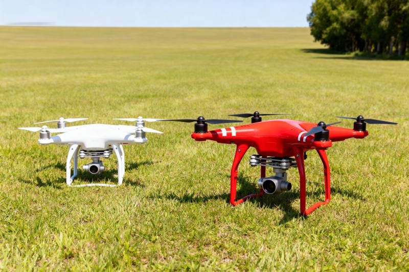 双色无人机草地静停