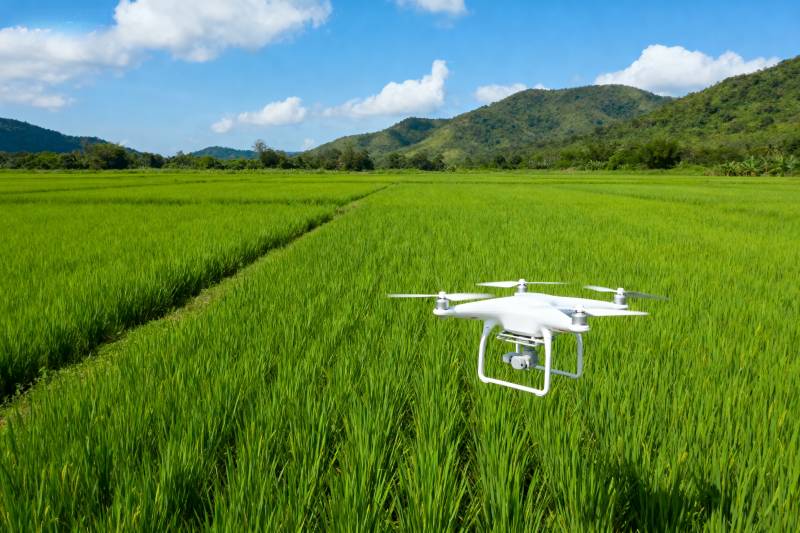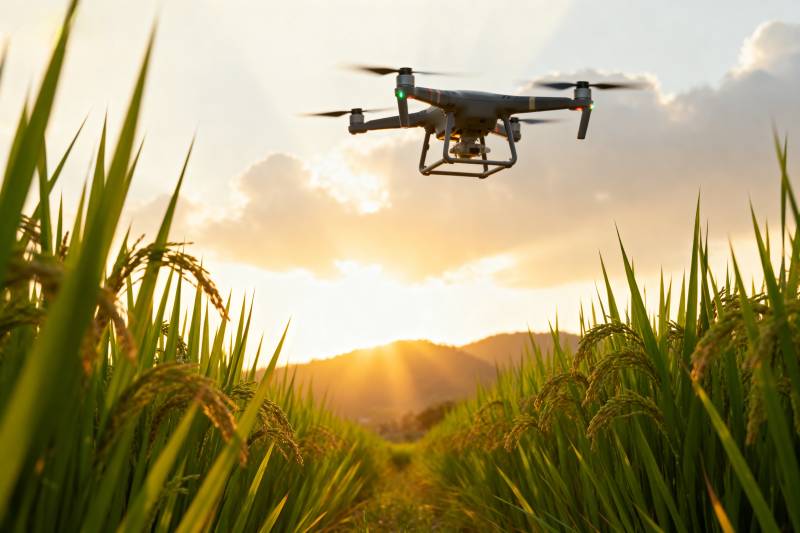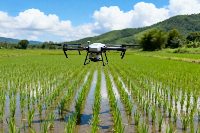 无人机耕作稻田