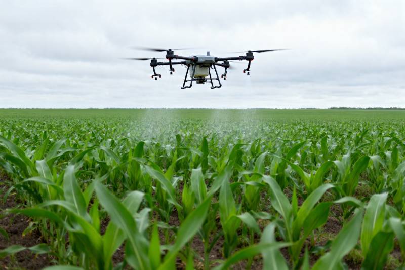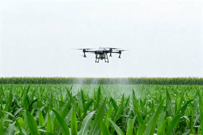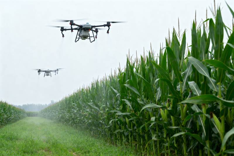 无人机喷洒玉米田