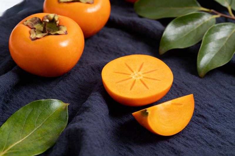 柿子切片与绿叶