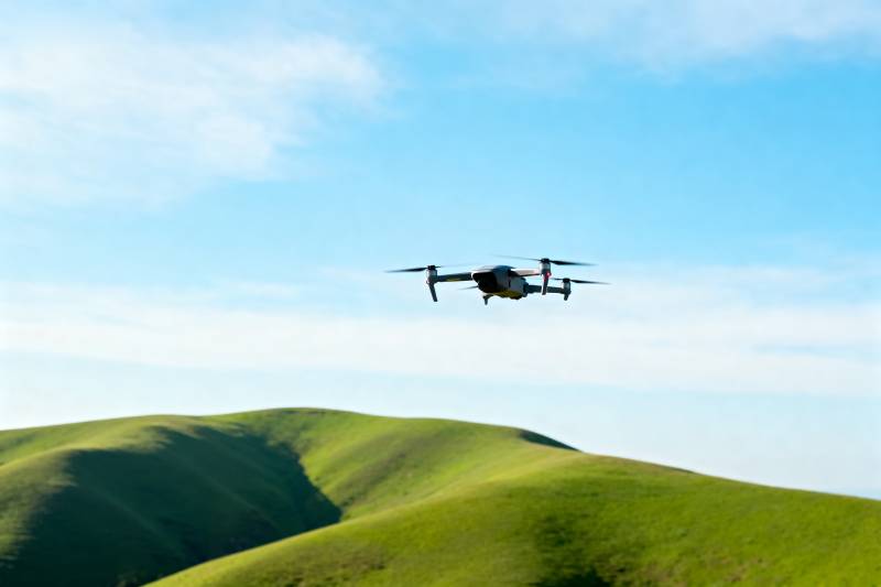 无人机飞越绿丘