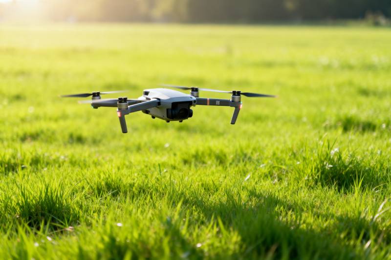 无人机飞越绿草地