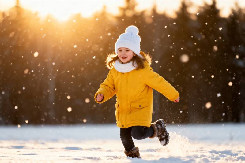 雪中奔跑的小女孩