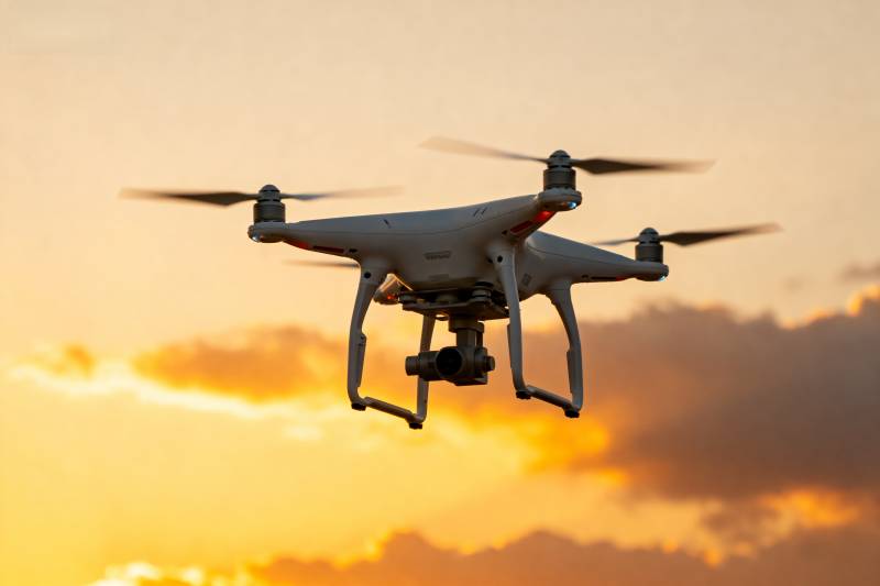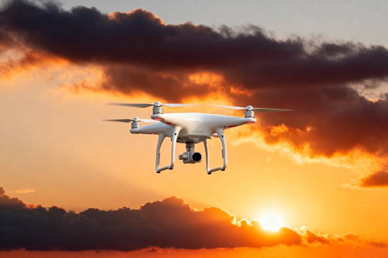 无人机翱翔夕阳中