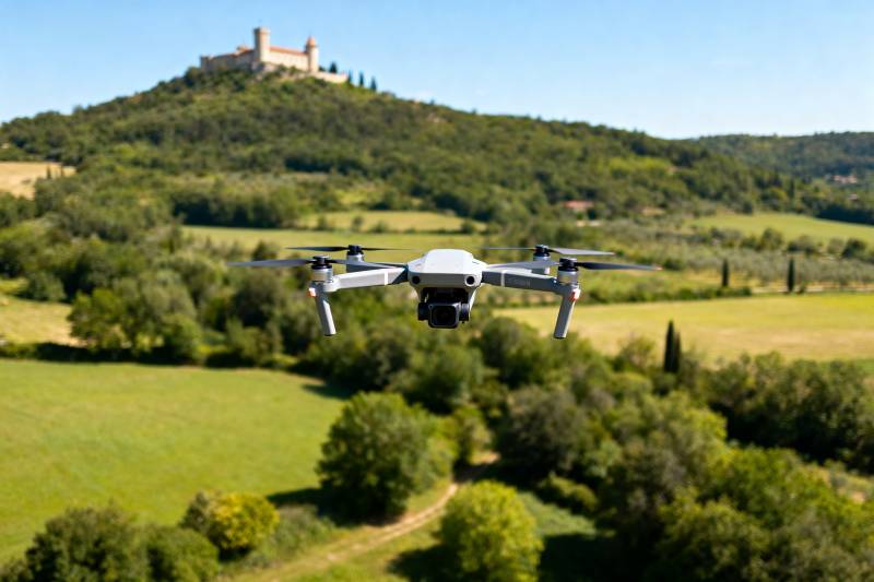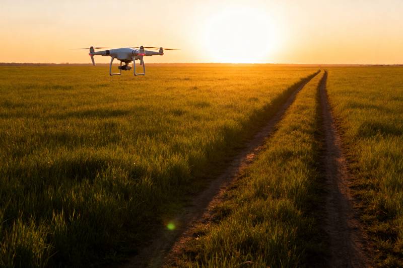 无人机飞越田野