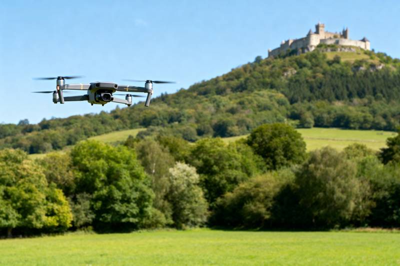 无人机飞越城堡山