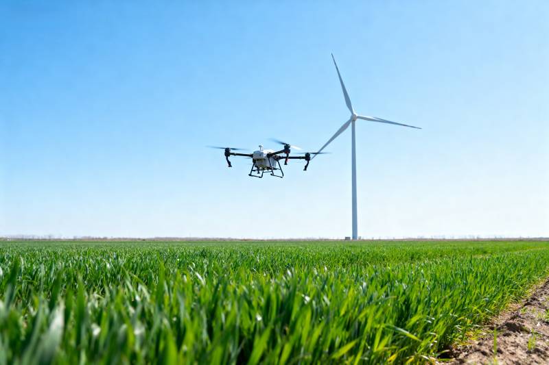 无人机巡田 风车相伴