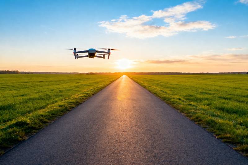 无人机飞越乡间小路