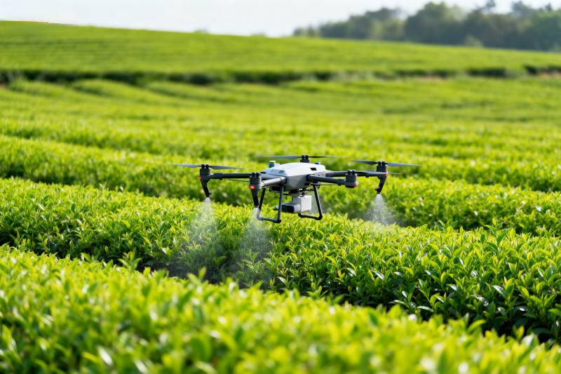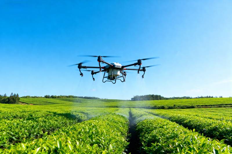无人机喷洒茶园