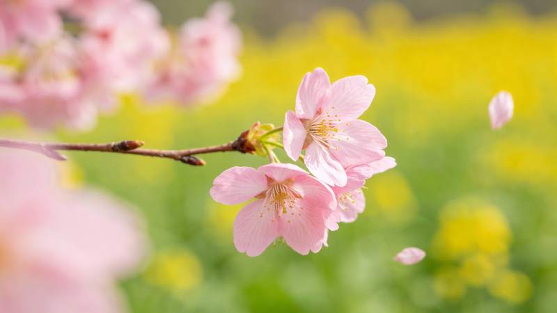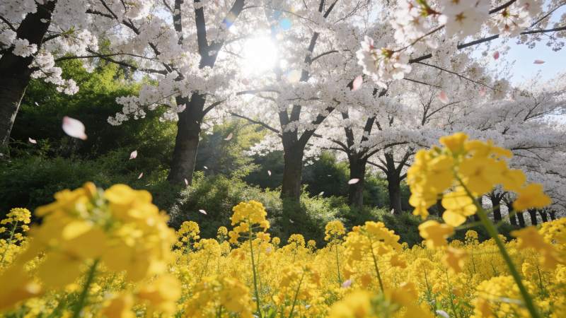 樱花盛开油菜花田春日美景