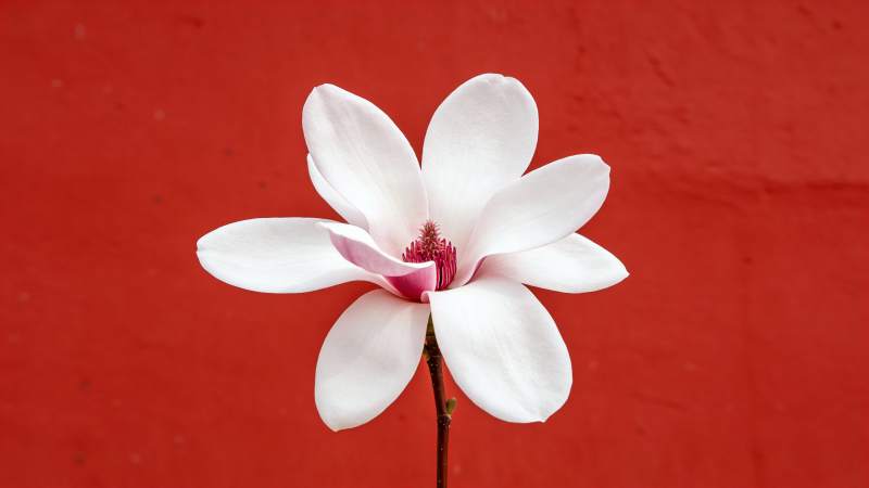 红底白玉兰绽放