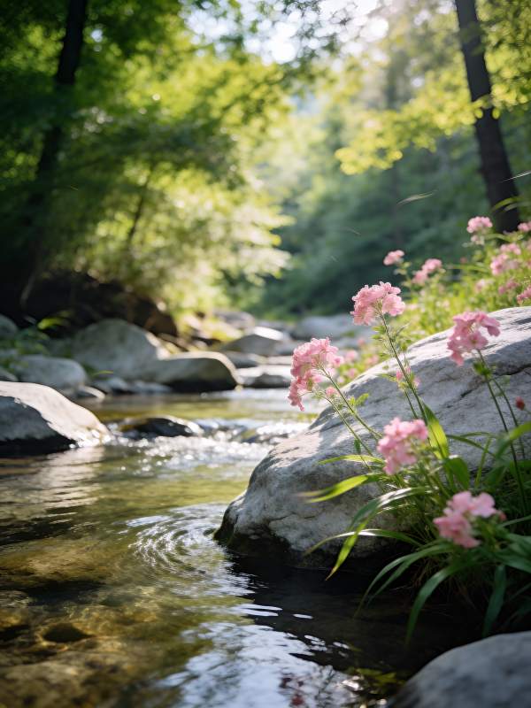 溪畔花影