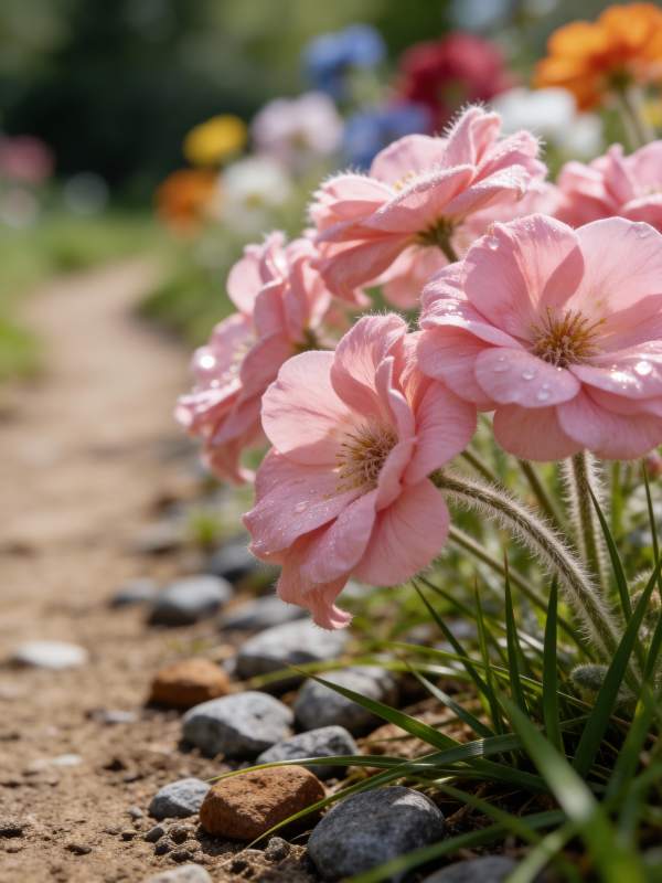 粉花石径春意浓