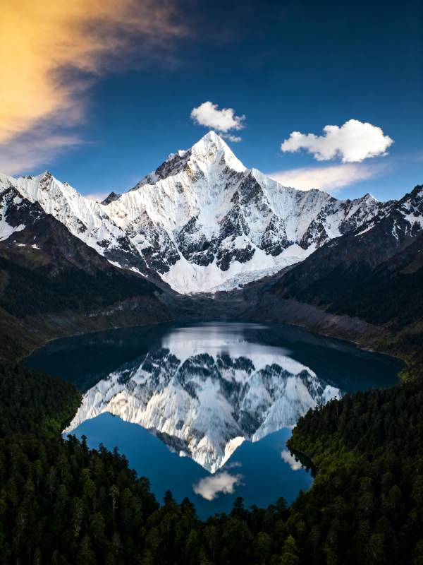雪山倒影湖光