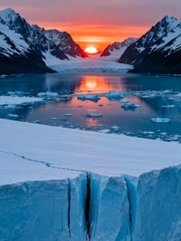 极地冰川日落