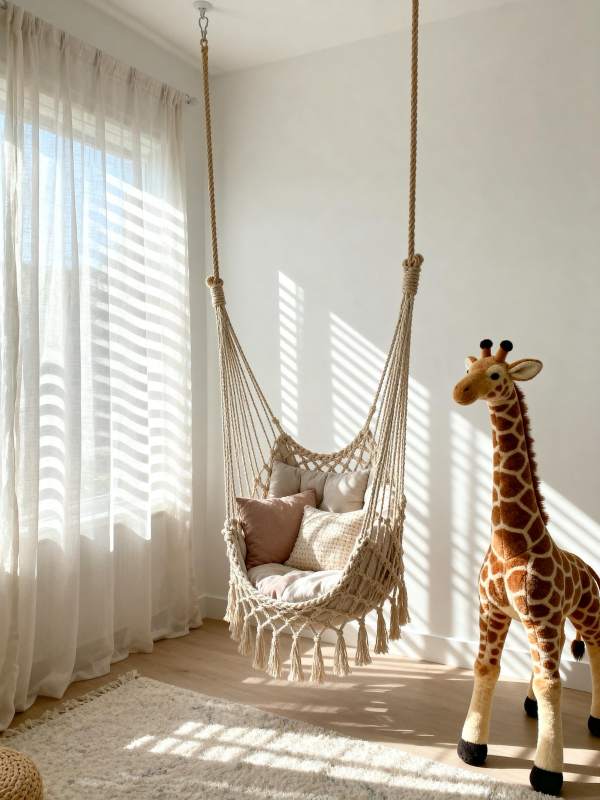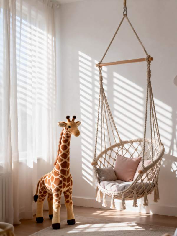 阳光下的吊椅与长颈鹿