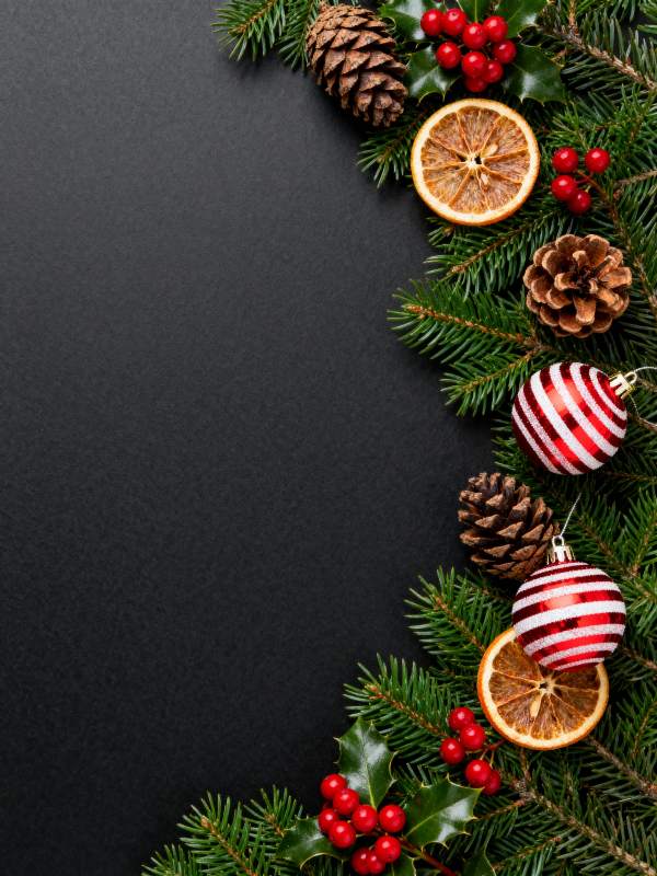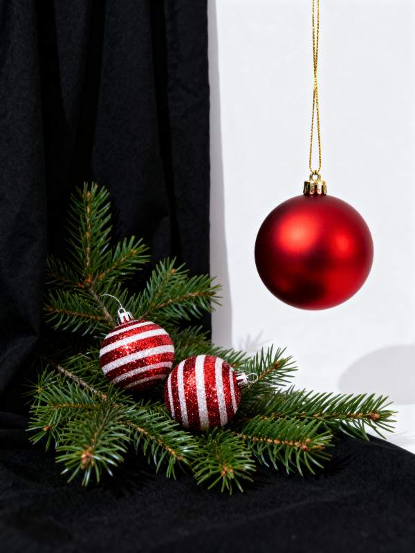 圣诞红球与松枝