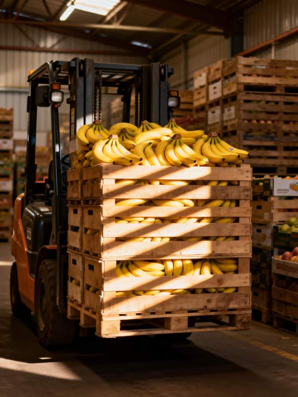 叉车搬运香蕉箱