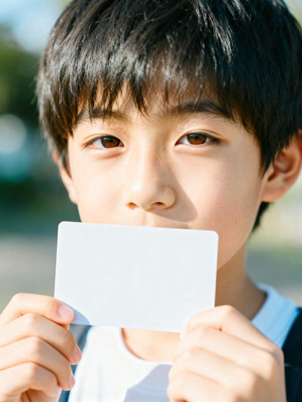 少年手持白卡