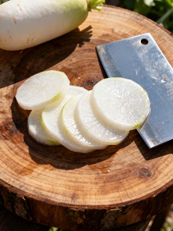 白萝卜片待烹
