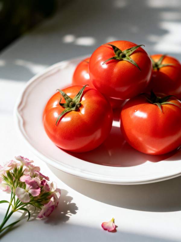 鲜红番茄伴花影