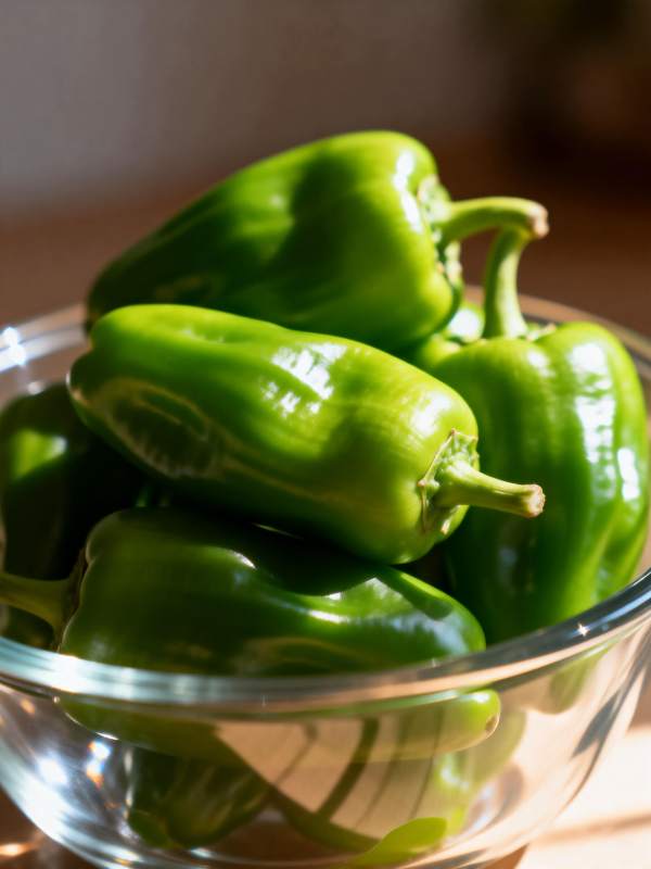 新鲜青椒盛碗中